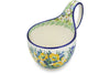 This Sitting Blue Birds 16 oz Bowl with Loop-Handle was handmade and hand decorated in Boleslawiec, Poland by skilled artisans according to old traditional methods. This is a Polish pottery Signature Unikat, which means that it has been hand painted with both sponges and brushes and it is signed by the artist who painted it. Unikat pieces are the most intricate works of art. Larger Unikat items take hours of very careful work to finish. This Polish stoneware is microwave, dishwasher, freezer, and oven safe up to 480°F. It does not contain lead or cadmium. It is part of the Sitting Blue Birds Collection.