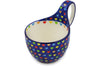 This Tranquility 16 oz Bowl with Loop-Handle was handmade and hand decorated in Boleslawiec, Poland by skilled artisans according to old traditional methods. This is a Polish pottery Signature Unikat, which means that it has been hand painted with both sponges and brushes and it is signed by the artist who painted it. Unikat pieces are the most intricate works of art. Larger Unikat items take hours of very careful work to finish. This Polish stoneware is microwave, dishwasher, freezer, and oven safe up to 480°F. It does not contain lead or cadmium. It is part of the Tranquility Collection.