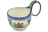 This Orange Peonies 16 oz Bowl with Loop-Handle was handmade and hand decorated in Boleslawiec, Poland by skilled artisans according to old traditional methods. This is a Polish pottery Signature Unikat, which means that it has been hand painted with both sponges and brushes and it is signed by the artist who painted it. Unikat pieces are the most intricate works of art. Larger Unikat items take hours of very careful work to finish. This Polish stoneware is microwave, dishwasher, freezer, and oven safe up to 480°F. It does not contain lead or cadmium. It is part of the Orange Peonies Collection.