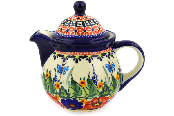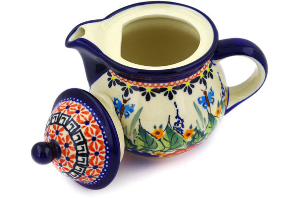 This Spring Splendor 12 oz Creamer was handmade and hand decorated in Boleslawiec, Poland by skilled artisans according to old traditional methods. This is a Polish pottery Signature Unikat, which means that it has been hand painted with both sponges and brushes and it is signed by the artist who painted it. Unikat pieces are the most intricate works of art. Larger Unikat items take hours of very careful work to finish. This Polish stoneware is microwave, dishwasher, freezer, and oven safe up to 480°F. It does not contain lead or cadmium. It is part of the Spring Splendor Collection.