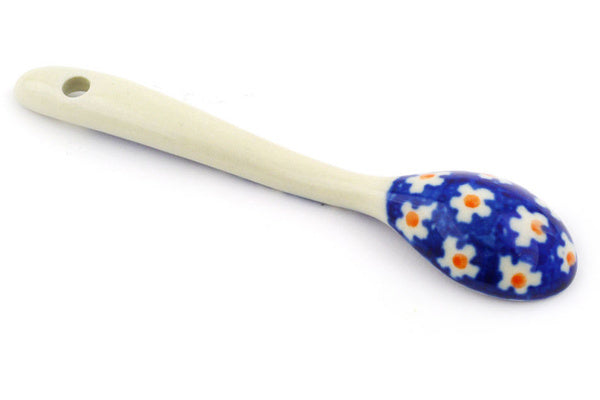 This Sunny Side Up Daisies 4" Spoon was handmade and hand decorated in Boleslawiec, Poland by skilled artisans according to old traditional methods. This Polish stoneware is microwave, dishwasher, freezer, and oven safe up to 480°F. It does not contain lead or cadmium. It is part of the Sunny Side Up Daisies Collection.