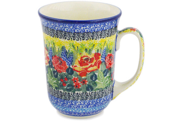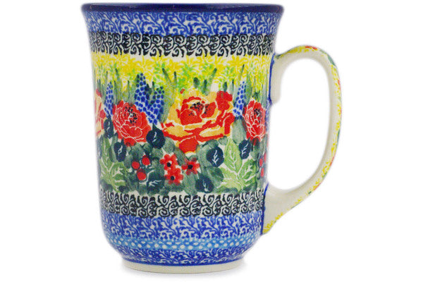 This Copper Rose Meadow 17 oz Bistro Mug was handmade and hand decorated in Boleslawiec, Poland by skilled artisans according to old traditional methods. This is a Polish pottery Signature Unikat, which means that it has been hand painted with both sponges and brushes and it is signed by the artist who painted it. Unikat pieces are the most intricate works of art. Larger Unikat items take hours of very careful work to finish. This Polish stoneware is microwave, dishwasher, freezer, and oven safe up to 480°F. It does not contain lead or cadmium. It is part of the Copper Rose Meadow Collection.