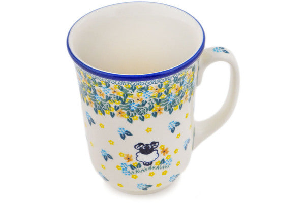 This Sheep In The Meadow 17 oz Bistro Mug was handmade and hand decorated in Boleslawiec, Poland by skilled artisans according to old traditional methods. This Polish stoneware is microwave, dishwasher, freezer, and oven safe up to 480°F. It does not contain lead or cadmium. It is part of the Sheep In The Meadow Collection.