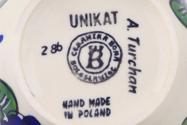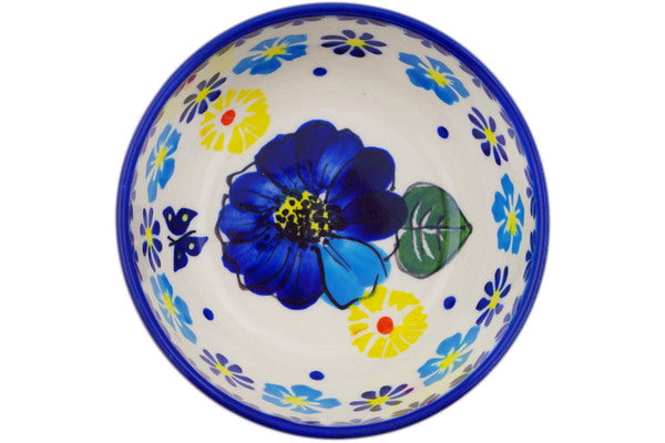 This Endless Summer 4" Bowl was handmade and hand decorated in Boleslawiec, Poland by skilled artisans according to old traditional methods. This is a Polish pottery Signature Unikat, which means that it has been hand painted with both sponges and brushes and it is signed by the artist who painted it. Unikat pieces are the most intricate works of art. Larger Unikat items take hours of very careful work to finish. This Polish stoneware is microwave, dishwasher, freezer, and oven safe up to 480°F. It does not contain lead or cadmium. It is part of the Endless Summer Collection.