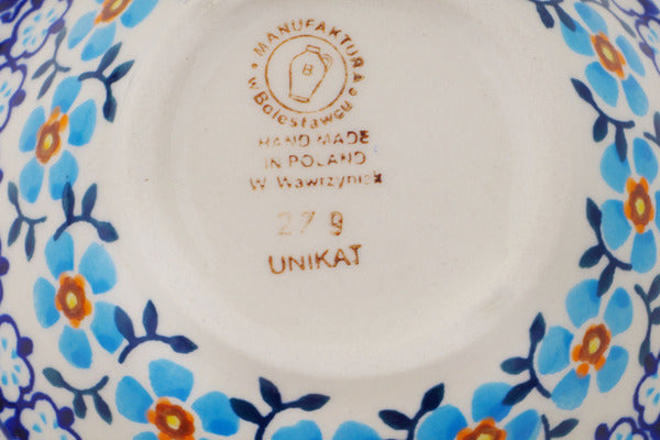 This Blue Chain 5" Bowl was handmade and hand decorated in Boleslawiec, Poland by skilled artisans according to old traditional methods. This is a Polish pottery Signature Unikat, which means that it has been hand painted with both sponges and brushes and it is signed by the artist who painted it. Unikat pieces are the most intricate works of art. Larger Unikat items take hours of very careful work to finish. This Polish stoneware is microwave, dishwasher, freezer, and oven safe up to 480°F. It does not contain lead or cadmium. It is part of the Blue Chain Collection.