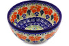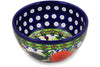 This Garden Delight 5" Bowl was handmade and hand decorated in Boleslawiec, Poland by skilled artisans according to old traditional methods. This is a Polish pottery Signature Unikat, which means that it has been hand painted with both sponges and brushes and it is signed by the artist who painted it. Unikat pieces are the most intricate works of art. Larger Unikat items take hours of very careful work to finish. This Polish stoneware is microwave, dishwasher, freezer, and oven safe up to 480°F. It does not contain lead or cadmium. It is part of the Garden Delight Collection.