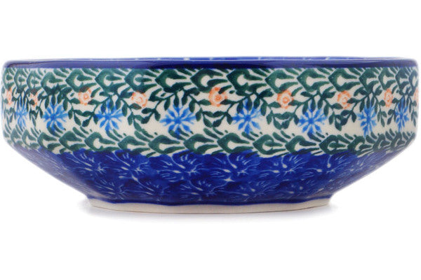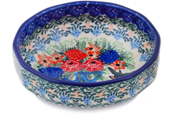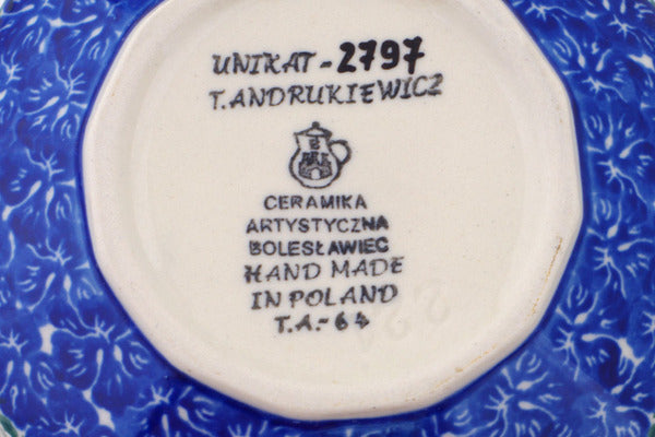 This Hummingbird Bouquet 5" Bowl was handmade and hand decorated in Boleslawiec, Poland by skilled artisans according to old traditional methods. This is a Polish pottery Signature Unikat, which means that it has been hand painted with both sponges and brushes and it is signed by the artist who painted it. Unikat pieces are the most intricate works of art. Larger Unikat items take hours of very careful work to finish. This Polish stoneware is microwave, dishwasher, freezer, and oven safe up to 480°F. It does not contain lead or cadmium. It is part of the Hummingbird Bouquet Collection.