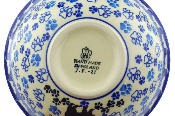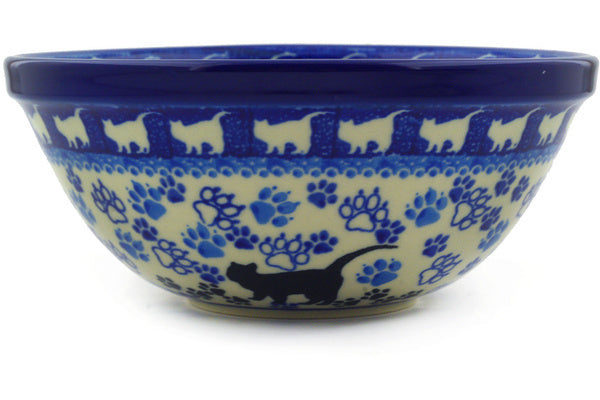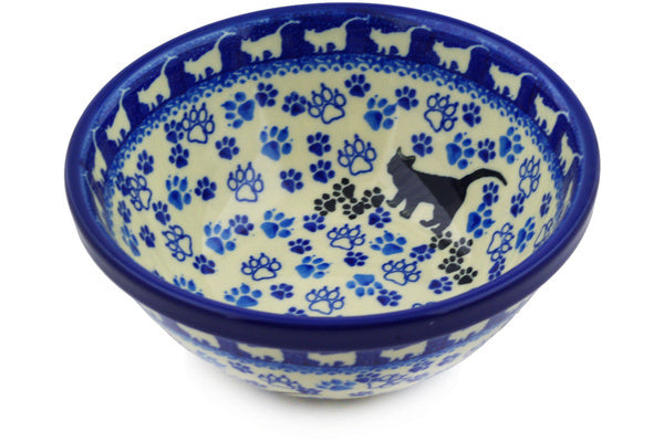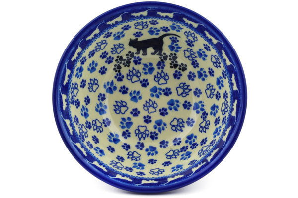 This Boo Boo Kitty Paws 6" Bowl was handmade and hand decorated in Boleslawiec, Poland by skilled artisans according to old traditional methods. This Polish stoneware is microwave, dishwasher, freezer, and oven safe up to 480°F. It does not contain lead or cadmium. It is part of the Boo Boo Kitty Paws Collection.