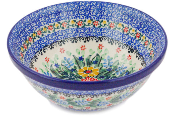 This Bouquet Of Beauty 6" Bowl was handmade and hand decorated in Boleslawiec, Poland by skilled artisans according to old traditional methods. This is a Polish pottery Signature Unikat, which means that it has been hand painted with both sponges and brushes and it is signed by the artist who painted it. Unikat pieces are the most intricate works of art. Larger Unikat items take hours of very careful work to finish. This Polish stoneware is microwave, dishwasher, freezer, and oven safe up to 480°F. It does not contain lead or cadmium. It is part of the Bouquet Of Beauty Collection.