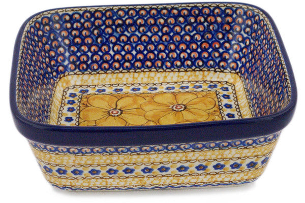 This Marigold Dreams 8" Bowl was handmade and hand decorated in Boleslawiec, Poland by skilled artisans according to old traditional methods. This is a Polish pottery Signature Unikat, which means that it has been hand painted with both sponges and brushes and it is signed by the artist who painted it. Unikat pieces are the most intricate works of art. Larger Unikat items take hours of very careful work to finish. This Polish stoneware is microwave, dishwasher, freezer, and oven safe up to 480°F. It does not contain lead or cadmium. It is part of the Marigold Dreams Collection.