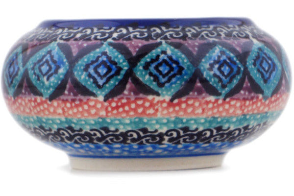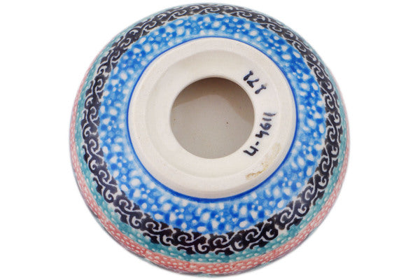This Mesa 3" Candle Holder was handmade and hand decorated in Boleslawiec, Poland by skilled artisans according to old traditional methods. This is a Polish pottery Signature Unikat, which means that it has been hand painted with both sponges and brushes and it is signed by the artist who painted it. Unikat pieces are the most intricate works of art. Larger Unikat items take hours of very careful work to finish. This Polish stoneware is microwave, dishwasher, freezer, and oven safe up to 480°F. It does not contain lead or cadmium. It is part of the Mesa Collection.