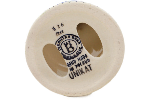 This Brilliant Butterfly Popp 7" Candle Holder was handmade and hand decorated in Boleslawiec, Poland by skilled artisans according to old traditional methods. This is a Polish pottery Signature Unikat, which means that it has been hand painted with both sponges and brushes and it is signed by the artist who painted it. Unikat pieces are the most intricate works of art. Larger Unikat items take hours of very careful work to finish. This Polish stoneware is microwave, dishwasher, freezer, and oven safe up to 480°F. It does not contain lead or cadmium. It is part of the Brilliant Butterfly Popp Collection.