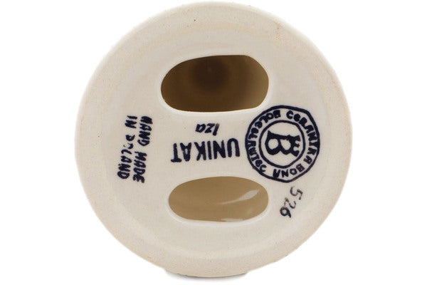 This Country Three 7" Candle Holder was handmade and hand decorated in Boleslawiec, Poland by skilled artisans according to old traditional methods. This is a Polish pottery Signature Unikat, which means that it has been hand painted with both sponges and brushes and it is signed by the artist who painted it. Unikat pieces are the most intricate works of art. Larger Unikat items take hours of very careful work to finish. This Polish stoneware is microwave, dishwasher, freezer, and oven safe up to 480°F. It does not contain lead or cadmium. It is part of the Country Three Collection.