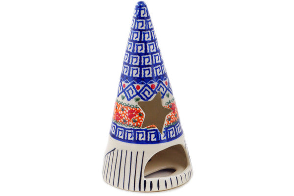 This Grecian Fire Tulips 7" Candle Holder was handmade and hand decorated in Boleslawiec, Poland by skilled artisans according to old traditional methods. This Polish stoneware is microwave, dishwasher, freezer, and oven safe up to 480°F. It does not contain lead or cadmium. It is part of the Grecian Fire Tulips Collection.