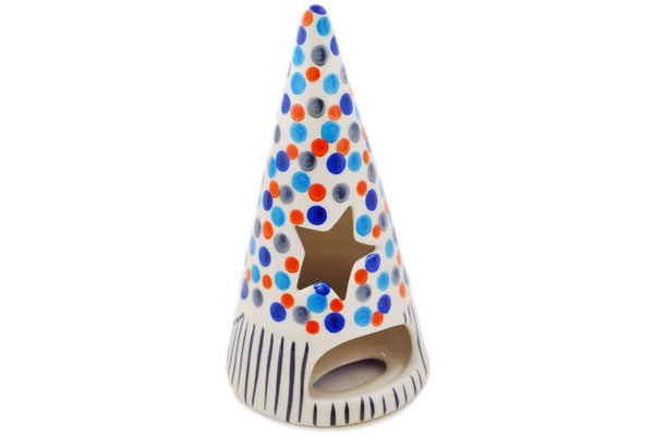 This Polka Dot Frenzy 7" Candle Holder was handmade and hand decorated in Boleslawiec, Poland by skilled artisans according to old traditional methods. This Polish stoneware is microwave, dishwasher, freezer, and oven safe up to 480°F. It does not contain lead or cadmium. It is part of the Polka Dot Frenzy Collection.