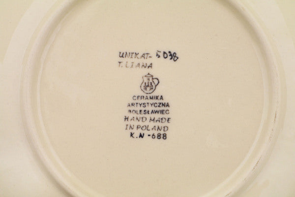 This Holly Jolly 8" Dessert Plate was handmade and hand decorated in Boleslawiec, Poland by skilled artisans according to old traditional methods. This is a Polish pottery Signature Unikat, which means that it has been hand painted with both sponges and brushes and it is signed by the artist who painted it. Unikat pieces are the most intricate works of art. Larger Unikat items take hours of very careful work to finish. This Polish stoneware is microwave, dishwasher, freezer, and oven safe up to 480°F. It does not contain lead or cadmium. It is part of the Holly Jolly Collection.