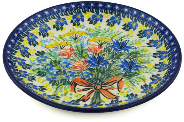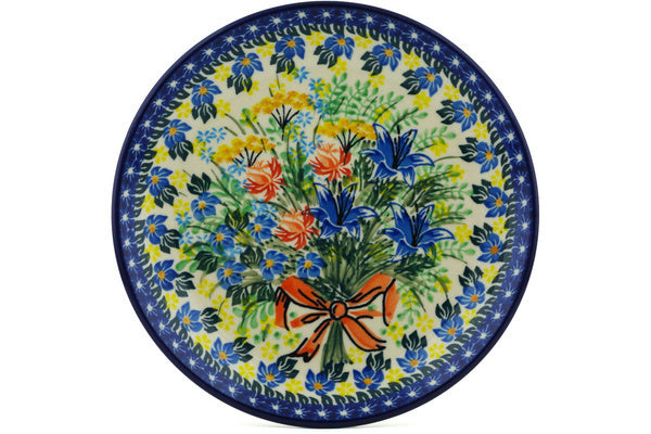 This Summer Bouquet 8" Dessert Plate was handmade and hand decorated in Boleslawiec, Poland by skilled artisans according to old traditional methods. This is a Polish pottery Signature Unikat, which means that it has been hand painted with both sponges and brushes and it is signed by the artist who painted it. Unikat pieces are the most intricate works of art. Larger Unikat items take hours of very careful work to finish. This Polish stoneware is microwave, dishwasher, freezer, and oven safe up to 480°F. It does not contain lead or cadmium. It is part of the Summer Bouquet Collection.