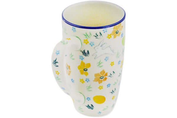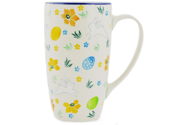This Egg Hunt 14 oz Latte Mug was handmade and hand decorated in Boleslawiec, Poland by skilled artisans according to old traditional methods. This Polish stoneware is microwave, dishwasher, freezer, and oven safe up to 480°F. It does not contain lead or cadmium. It is part of the Egg Hunt Collection.