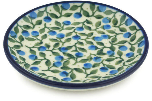 This Blueberry Vine 4" Mini Plate, Coaster plate was handmade and hand decorated in Boleslawiec, Poland by skilled artisans according to old traditional methods. This Polish stoneware is microwave, dishwasher, freezer, and oven safe up to 480°F. It does not contain lead or cadmium. It is part of the Blueberry Vine Collection.