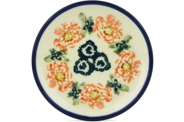 This Meadow Breeze 4" Mini Plate, Coaster plate was handmade and hand decorated in Boleslawiec, Poland by skilled artisans according to old traditional methods. This Polish stoneware is microwave, dishwasher, freezer, and oven safe up to 480°F. It does not contain lead or cadmium. It is part of the Meadow Breeze Collection.