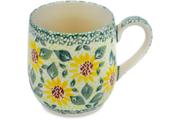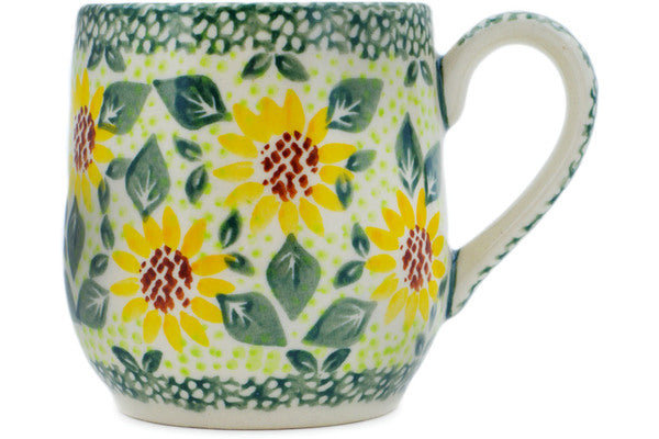 This Sunflower Fields 11 oz Mug was handmade and hand decorated in Boleslawiec, Poland by skilled artisans according to old traditional methods. This Polish stoneware is microwave, dishwasher, freezer, and oven safe up to 480°F. It does not contain lead or cadmium. It is part of the Sunflower Fields Collection.