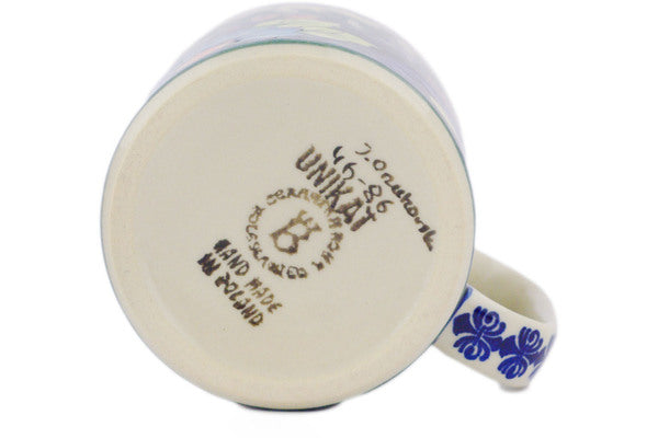 This Butterfly Splendor 13 oz Mug was handmade and hand decorated in Boleslawiec, Poland by skilled artisans according to old traditional methods. This is a Polish pottery Signature Unikat, which means that it has been hand painted with both sponges and brushes and it is signed by the artist who painted it. Unikat pieces are the most intricate works of art. Larger Unikat items take hours of very careful work to finish. This Polish stoneware is microwave, dishwasher, freezer, and oven safe up to 480°F. It does not contain lead or cadmium. It is part of the Butterfly Splendor Collection.
