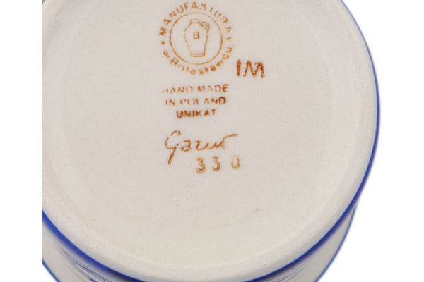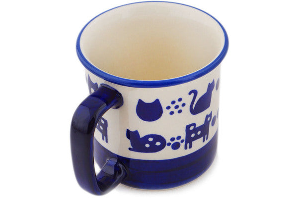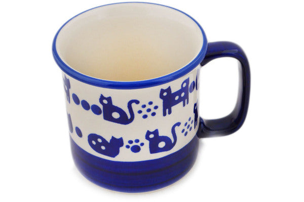 This Cobalt Kittens 12 oz Mug was handmade and hand decorated in Boleslawiec, Poland by skilled artisans according to old traditional methods. This is a Polish pottery Signature Unikat, which means that it has been hand painted with both sponges and brushes and it is signed by the artist who painted it. Unikat pieces are the most intricate works of art. Larger Unikat items take hours of very careful work to finish. This Polish stoneware is microwave, dishwasher, freezer, and oven safe up to 480°F. It does not contain lead or cadmium. It is part of the Cobalt Kittens Collection.