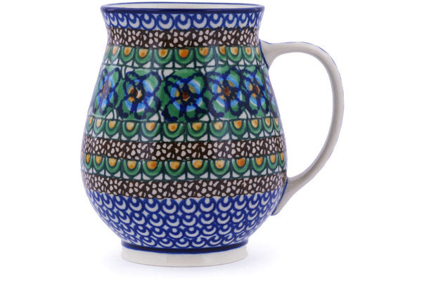 This Mardi Gras 17 oz Mug was handmade and hand decorated in Boleslawiec, Poland by skilled artisans according to old traditional methods. This is a Polish pottery Signature Unikat, which means that it has been hand painted with both sponges and brushes and it is signed by the artist who painted it. Unikat pieces are the most intricate works of art. Larger Unikat items take hours of very careful work to finish. This Polish stoneware is microwave, dishwasher, freezer, and oven safe up to 480°F. It does not contain lead or cadmium. It is part of the Mardi Gras Collection.