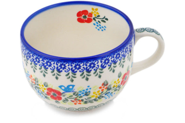 This Ring Of Meadow Flowers 23 oz Mug was handmade and hand decorated in Boleslawiec, Poland by skilled artisans according to old traditional methods. This Polish stoneware is microwave, dishwasher, freezer, and oven safe up to 480°F. It does not contain lead or cadmium. It is part of the Ring Of Meadow Flowers Collection.