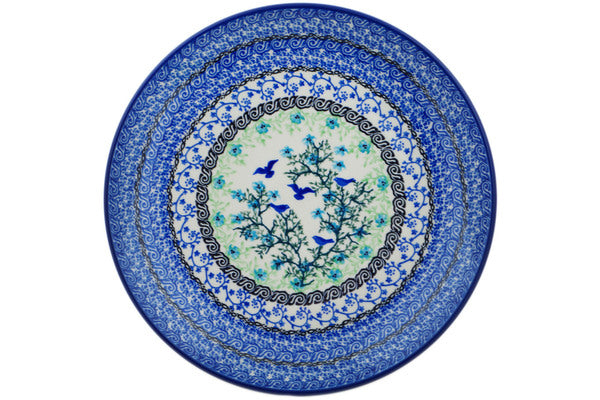 This Blue Bird Flying 10" Plate was handmade and hand decorated in Boleslawiec, Poland by skilled artisans according to old traditional methods. This is a Polish pottery Signature Unikat, which means that it has been hand painted with both sponges and brushes and it is signed by the artist who painted it. Unikat pieces are the most intricate works of art. Larger Unikat items take hours of very careful work to finish. This Polish stoneware is microwave, dishwasher, freezer, and oven safe up to 480°F. It does not contain lead or cadmium. It is part of the Blue Bird Flying Collection.