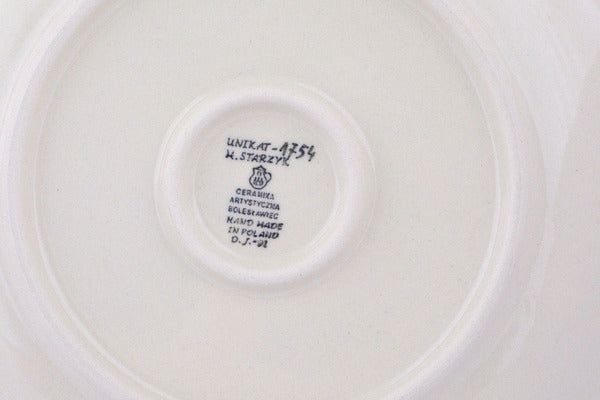 This La Memoire 10" Plate was handmade and hand decorated in Boleslawiec, Poland by skilled artisans according to old traditional methods. This is a Polish pottery Signature Unikat, which means that it has been hand painted with both sponges and brushes and it is signed by the artist who painted it. Unikat pieces are the most intricate works of art. Larger Unikat items take hours of very careful work to finish. This Polish stoneware is microwave, dishwasher, freezer, and oven safe up to 480°F. It does not contain lead or cadmium. It is part of the La Memoire Collection.