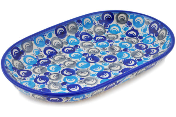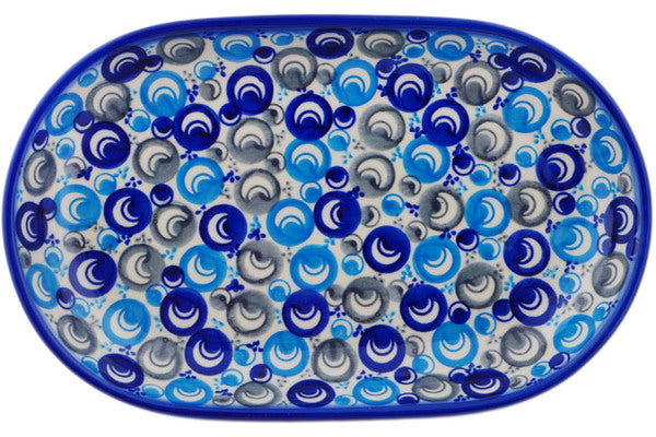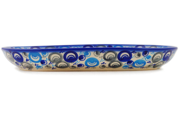 This Blue Peacock Eye 11" Platter was handmade and hand decorated in Boleslawiec, Poland by skilled artisans according to old traditional methods. This Polish stoneware is microwave, dishwasher, freezer, and oven safe up to 480°F. It does not contain lead or cadmium. It is part of the Blue Peacock Eye Collection.