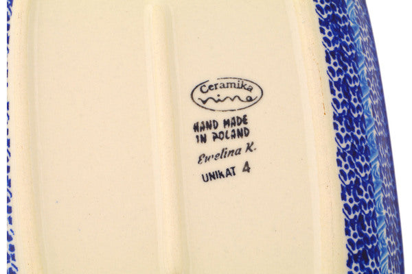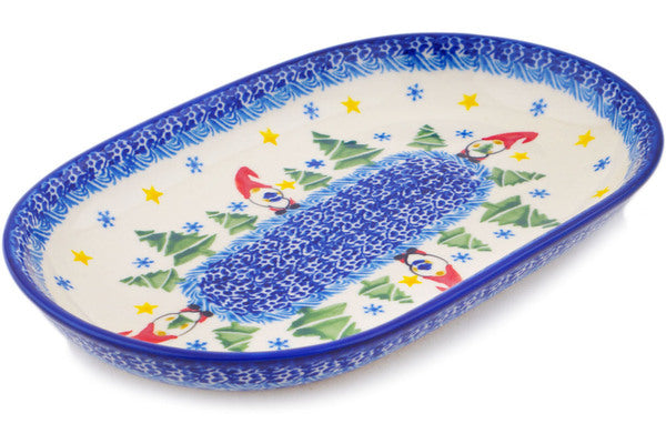 This Twinkle Twinkle Little Gnome 11" Platter was handmade and hand decorated in Boleslawiec, Poland by skilled artisans according to old traditional methods. This Polish stoneware is microwave, dishwasher, freezer, and oven safe up to 480°F. It does not contain lead or cadmium. It is part of the Twinkle Twinkle Little Gnome Collection.