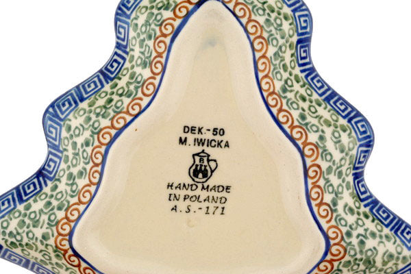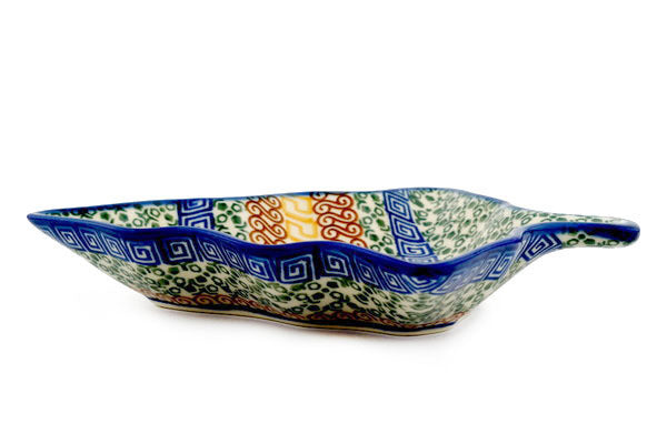 This Grecian Sea 8" Platter was handmade and hand decorated in Boleslawiec, Poland by skilled artisans according to old traditional methods. This Polish stoneware is microwave, dishwasher, freezer, and oven safe up to 480°F. It does not contain lead or cadmium. It is part of the Grecian Sea Collection.