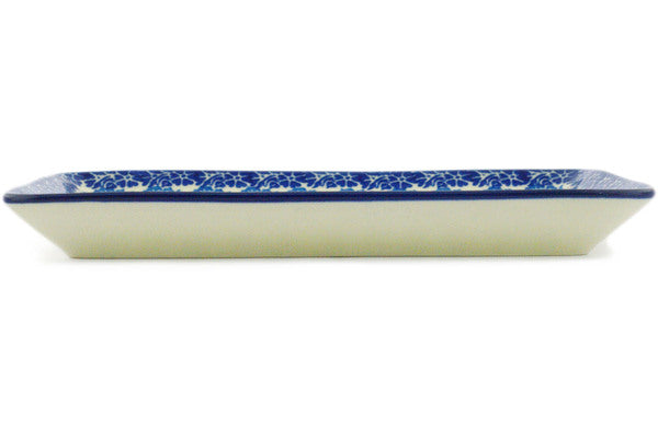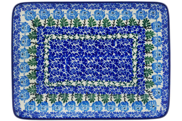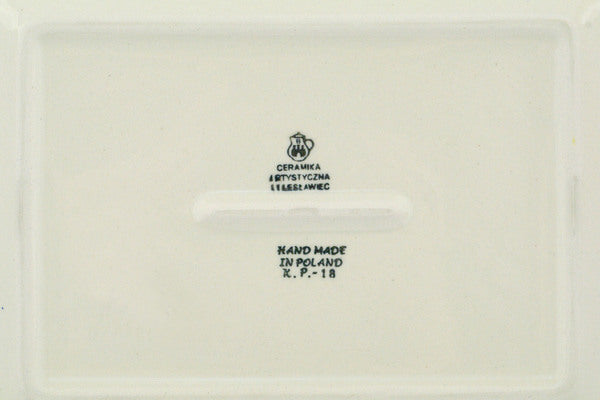 This Blue Rosette Wreath 9" Platter was handmade and hand decorated in Boleslawiec, Poland by skilled artisans according to old traditional methods. This Polish stoneware is microwave, dishwasher, freezer, and oven safe up to 480°F. It does not contain lead or cadmium. It is part of the Blue Rosette Wreath Collection.