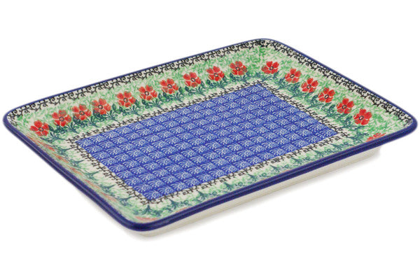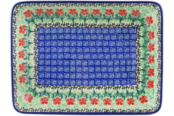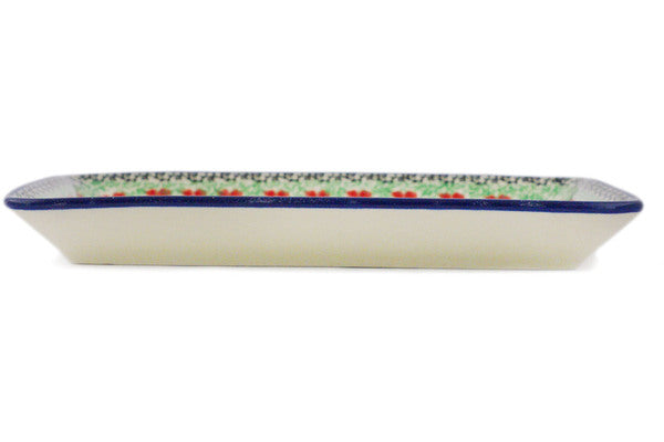 This Maraschino 9" Platter was handmade and hand decorated in Boleslawiec, Poland by skilled artisans according to old traditional methods. This Polish stoneware is microwave, dishwasher, freezer, and oven safe up to 480°F. It does not contain lead or cadmium. It is part of the Maraschino Collection.