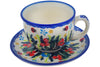 This New Life 8 oz Cup was handmade and hand decorated in Boleslawiec, Poland by skilled artisans according to old traditional methods. This is a Polish pottery Signature Unikat, which means that it has been hand painted with both sponges and brushes and it is signed by the artist who painted it. Unikat pieces are the most intricate works of art. Larger Unikat items take hours of very careful work to finish. This Polish stoneware is microwave, dishwasher, freezer, and oven safe up to 480°F. It does not contain lead or cadmium. It is part of the New Life Collection.