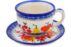 This Garden Delight 9 oz Cup with Saucer was handmade and hand decorated in Boleslawiec, Poland by skilled artisans according to old traditional methods. This is a Polish pottery Signature Unikat, which means that it has been hand painted with both sponges and brushes and it is signed by the artist who painted it. Unikat pieces are the most intricate works of art. Larger Unikat items take hours of very careful work to finish. This Polish stoneware is microwave, dishwasher, freezer, and oven safe up to 480°F. It does not contain lead or cadmium. It is part of the Garden Delight Collection.