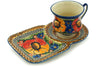 This Morning Glory 9 oz Cup with Saucer was handmade and hand decorated in Boleslawiec, Poland by skilled artisans according to old traditional methods. This is a Polish pottery Signature Unikat, which means that it has been hand painted with both sponges and brushes and it is signed by the artist who painted it. Unikat pieces are the most intricate works of art. Larger Unikat items take hours of very careful work to finish. This Polish stoneware is microwave, dishwasher, freezer, and oven safe up to 480°F. It does not contain lead or cadmium. It is part of the Morning Glory Collection.