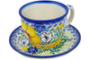 This Floral Fantasy Cup with Saucer was handmade and hand decorated in Boleslawiec, Poland by skilled artisans according to old traditional methods. This is a Polish pottery Signature Unikat, which means that it has been hand painted with both sponges and brushes and it is signed by the artist who painted it. Unikat pieces are the most intricate works of art. Larger Unikat items take hours of very careful work to finish. This Polish stoneware is microwave, dishwasher, freezer, and oven safe up to 480°F. It does not contain lead or cadmium. It is part of the Floral Fantasy Collection.