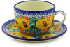 This Fresh Happiness Cup with Saucer was handmade and hand decorated in Boleslawiec, Poland by skilled artisans according to old traditional methods. This is a Polish pottery Signature Unikat, which means that it has been hand painted with both sponges and brushes and it is signed by the artist who painted it. Unikat pieces are the most intricate works of art. Larger Unikat items take hours of very careful work to finish. This Polish stoneware is microwave, dishwasher, freezer, and oven safe up to 480°F. It does not contain lead or cadmium. It is part of the Fresh Happiness Collection.