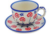 This Sunflower Fields Cup with Saucer was handmade and hand decorated in Boleslawiec, Poland by skilled artisans according to old traditional methods. This Polish stoneware is microwave, dishwasher, freezer, and oven safe up to 480°F. It does not contain lead or cadmium. It is part of the Sunflower Fields Collection.