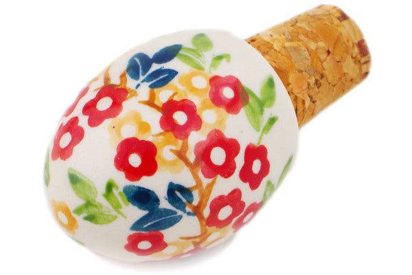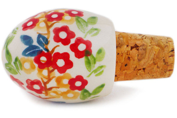 This Tropical Bloomscape 3" Bottle Stopper was handmade and hand decorated in Boleslawiec, Poland by skilled artisans according to old traditional methods. This Polish stoneware is microwave, dishwasher, freezer, and oven safe up to 480°F. It does not contain lead or cadmium. It is part of the Tropical Bloomscape Collection.