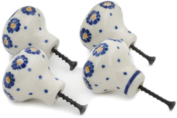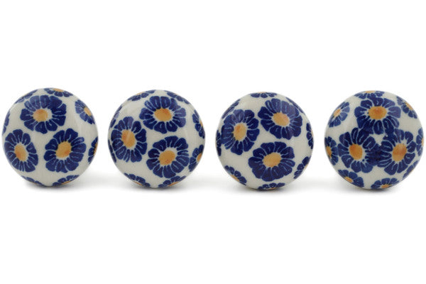 Set of 4 Drawer Pull Knobs 1-1/2 inch Blue Zinnia Theme