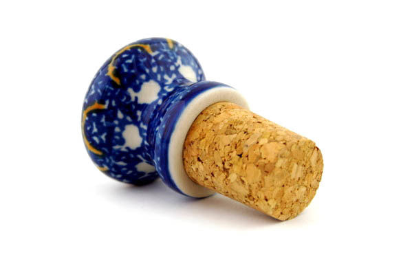 This Odysseus 3" Bottle Stopper was handmade and hand decorated in Boleslawiec, Poland by skilled artisans according to old traditional methods. This Polish stoneware is microwave, dishwasher, freezer, and oven safe up to 480°F. It does not contain lead or cadmium. It is part of the Odysseus Collection.