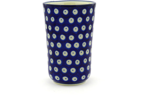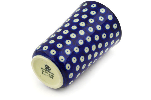 This Blue Eyes 15 oz Tumbler was handmade and hand decorated in Boleslawiec, Poland by skilled artisans according to old traditional methods. This Polish stoneware is microwave, dishwasher, freezer, and oven safe up to 480°F. It does not contain lead or cadmium. It is part of the Blue Eyes Collection.