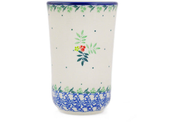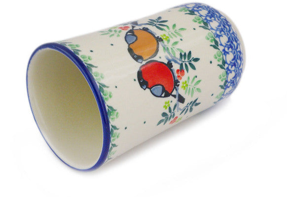 This Robin & Wren 15 oz Tumbler was handmade and hand decorated in Boleslawiec, Poland by skilled artisans according to old traditional methods. This is a Polish pottery Signature Unikat, which means that it has been hand painted with both sponges and brushes and it is signed by the artist who painted it. Unikat pieces are the most intricate works of art. Larger Unikat items take hours of very careful work to finish. This Polish stoneware is microwave, dishwasher, freezer, and oven safe up to 480°F. It does not contain lead or cadmium. It is part of the Robin & Wren Collection.