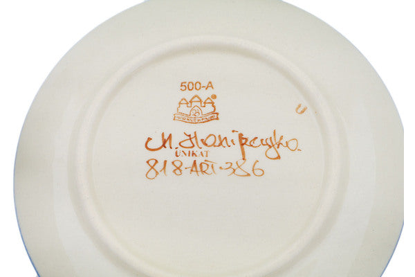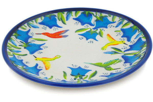 This Delicate Hummingbird 6" Plate 6" was handmade and hand decorated in Boleslawiec, Poland by skilled artisans according to old traditional methods. This is a Polish pottery Signature Unikat, which means that it has been hand painted with both sponges and brushes and it is signed by the artist who painted it. Unikat pieces are the most intricate works of art. Larger Unikat items take hours of very careful work to finish. This Polish stoneware is microwave, dishwasher, freezer, and oven safe up to 480°F. It does not contain lead or cadmium. It is part of the Delicate Hummingbird Collection.