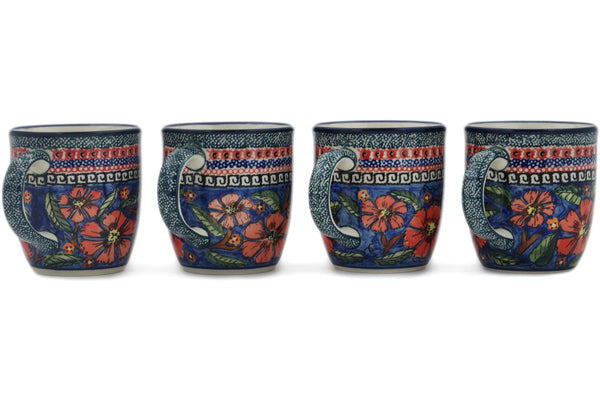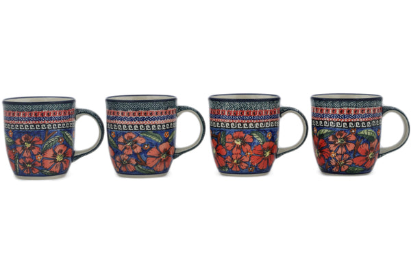 This Poppies Set of Four 12oz Mugs was handmade and hand decorated in Boleslawiec, Poland by skilled artisans according to old traditional methods. This is a Polish pottery Signature Unikat, which means that it has been hand painted with both sponges and brushes and it is signed by the artist who painted it. Unikat pieces are the most intricate works of art. Larger Unikat items take hours of very careful work to finish. This Polish stoneware is microwave, dishwasher, freezer, and oven safe up to 480°F. It does not contain lead or cadmium. It is part of the Poppies Collection.