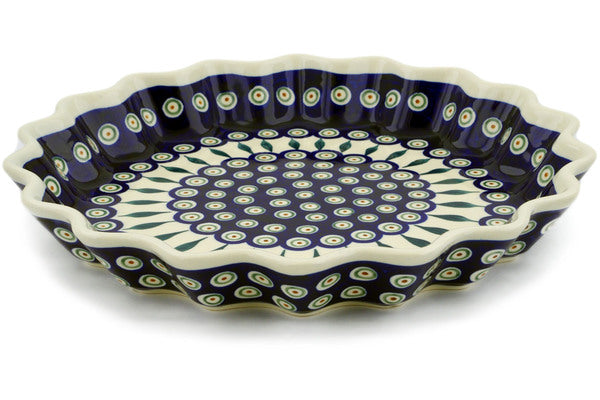 Fluted Pie Dish 13" Peacock Leaves Theme